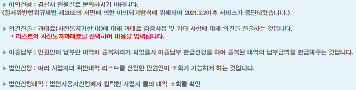 이 외에도 이중납부가 된 경우 등의 민원처리도 가능하니 중복처리가 된경우 환급받으시기 바랍니다.
